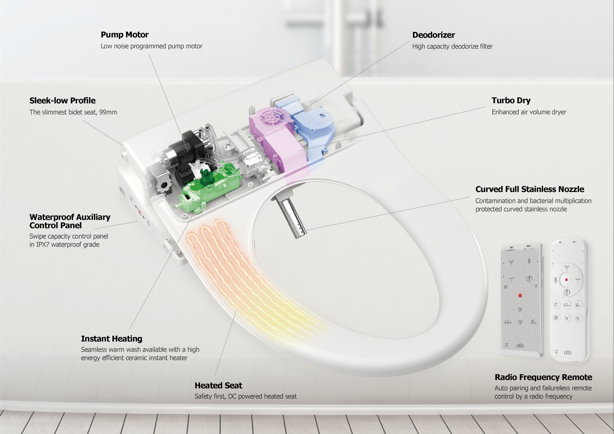 Slim type with 99mm height ( Other bidet product are normally 140-200mm) it is comfortable and looks pretty